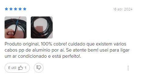 Na HF Elétrica, nosso compromisso com a excelência é refletido em cada produto e atendimento que oferecemos. Somos reconhecidos como Líder Platinum no Mercado Livre e Vendedor Indicado no Shopee, o que demonstra nossa dedicação em superar as expectativas dos nossos clientes. Acreditamos que cada avaliação é uma oportunidade de aprimorar ainda mais nossos serviços e garantir que você tenha a melhor experiência de compra possível. Confira abaixo as opiniões de quem já confiou na HF Elétrica e veja por que somos referência em fios e cabos elétricos em todo o Brasil.